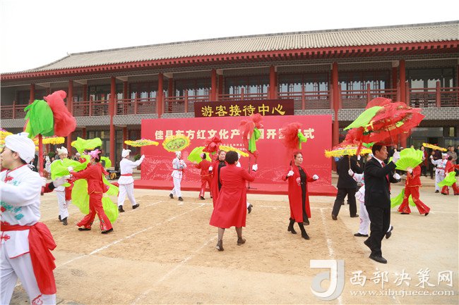 開園儀式上,彩旗飄揚(yáng),鑼鼓喧天。上午10時(shí)30分,佳縣縣委書記劉生勝隆重宣布:“東方紅文化產(chǎn)業(yè)園正式開園,歷時(shí)建設(shè)多年的東方紅文化產(chǎn)業(yè)園正式啟動(dòng),標(biāo)志著佳縣紅色文化旅游發(fā)展邁上了新臺(tái)階。”