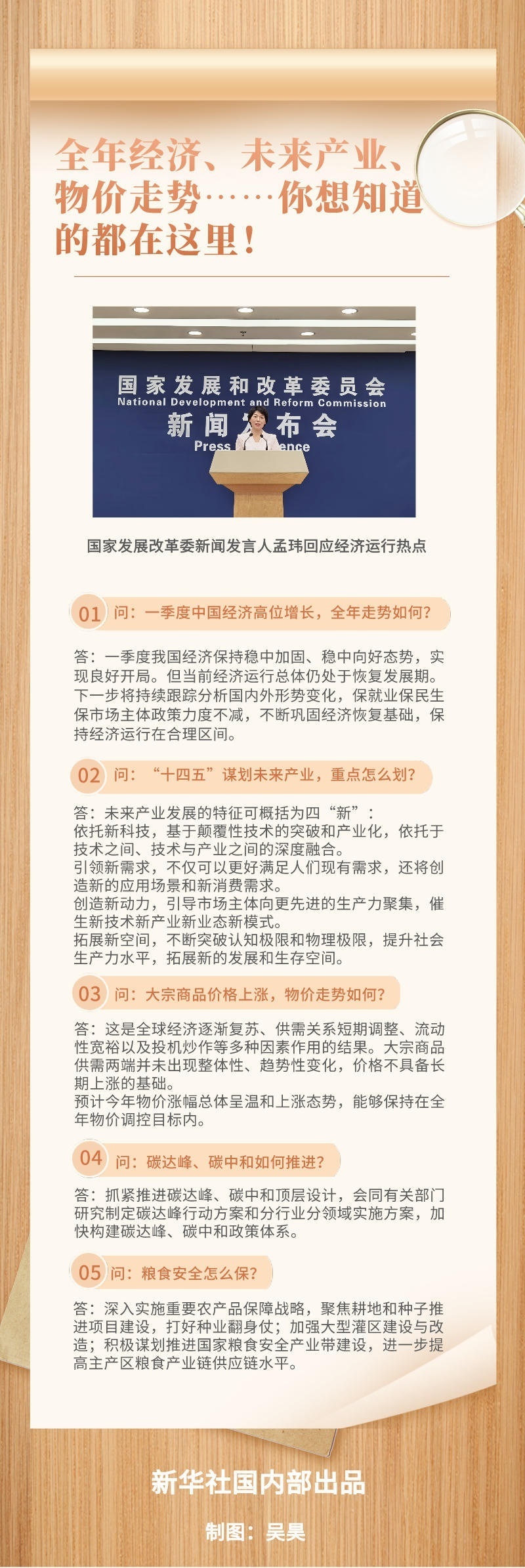 一季度中國經(jīng)濟(jì)高位增長,全年走勢如何?“十四五”謀劃未來產(chǎn)業(yè),重點(diǎn)怎么劃?大宗商品價(jià)格上漲,物價(jià)可控嗎?國家發(fā)展改革委新聞發(fā)言人孟瑋在19日舉行的新聞發(fā)布會(huì)上就熱點(diǎn)問題作出回應(yīng)。
