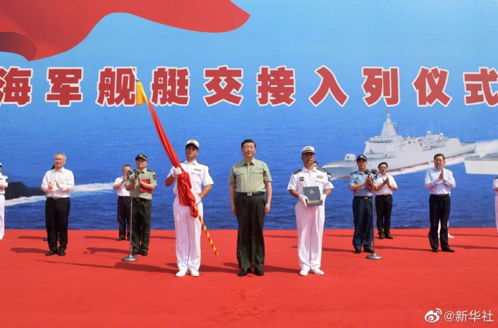 交接入列儀式在中國(guó)人民解放軍軍歌聲中結(jié)束。隨后,習(xí)近平登上新入列艦艇,檢閱艦艇儀仗隊(duì),察看有關(guān)武器裝備,同官兵進(jìn)行交流,并在航泊日志上鄭重簽名。