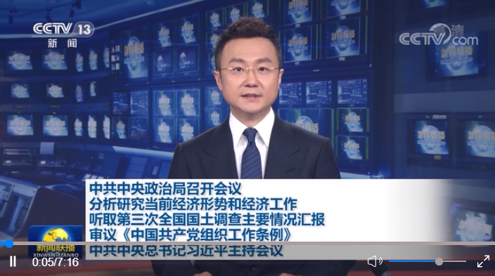 分析研究當(dāng)前經(jīng)濟(jì)形勢和經(jīng)濟(jì)工作 聽取第三次全國國土調(diào)查主要情況匯報(bào) 審議《中國共產(chǎn)黨組織工作條例》