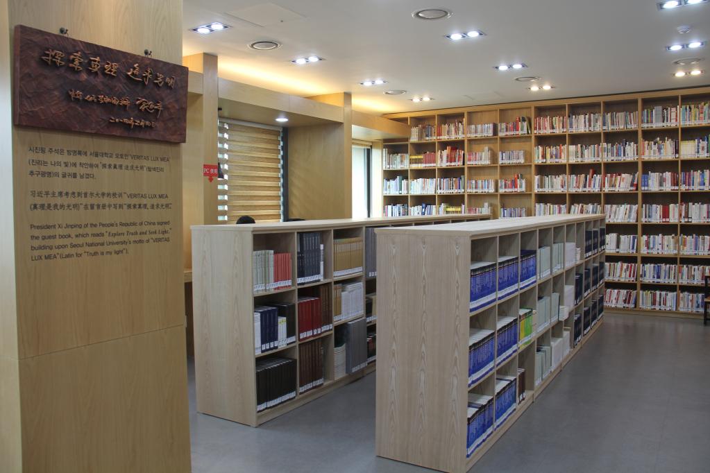 為體現(xiàn)對獲贈資料的重視,首爾大學專門將圖書館本館原館長室修葺一新。2015年10月13日,“習近平捐贈圖書資料室”舉行開館儀式。共有10052件中方贈送的圖書和影視資料移交首爾大學中央圖書館,寓意“讀萬卷書、行萬里路”,包括中國歷史、哲學、文化、藝術、自然科學、工科以及東北亞形勢的圖書9297冊和影視資料755份,可供首爾大學學生、教職員工和首爾市民參觀、學習和借閱。