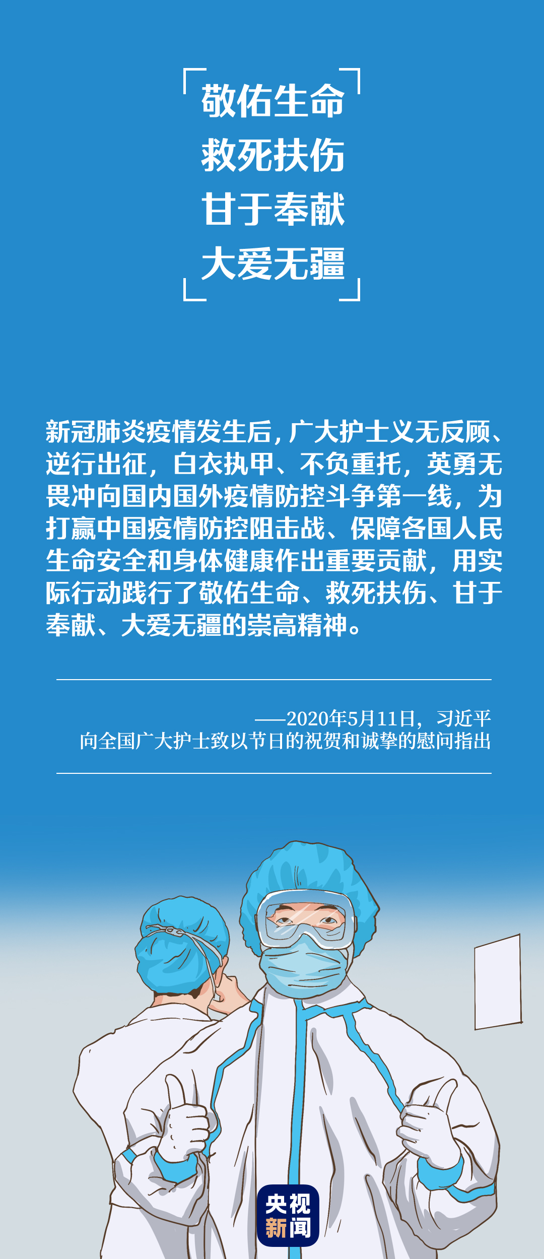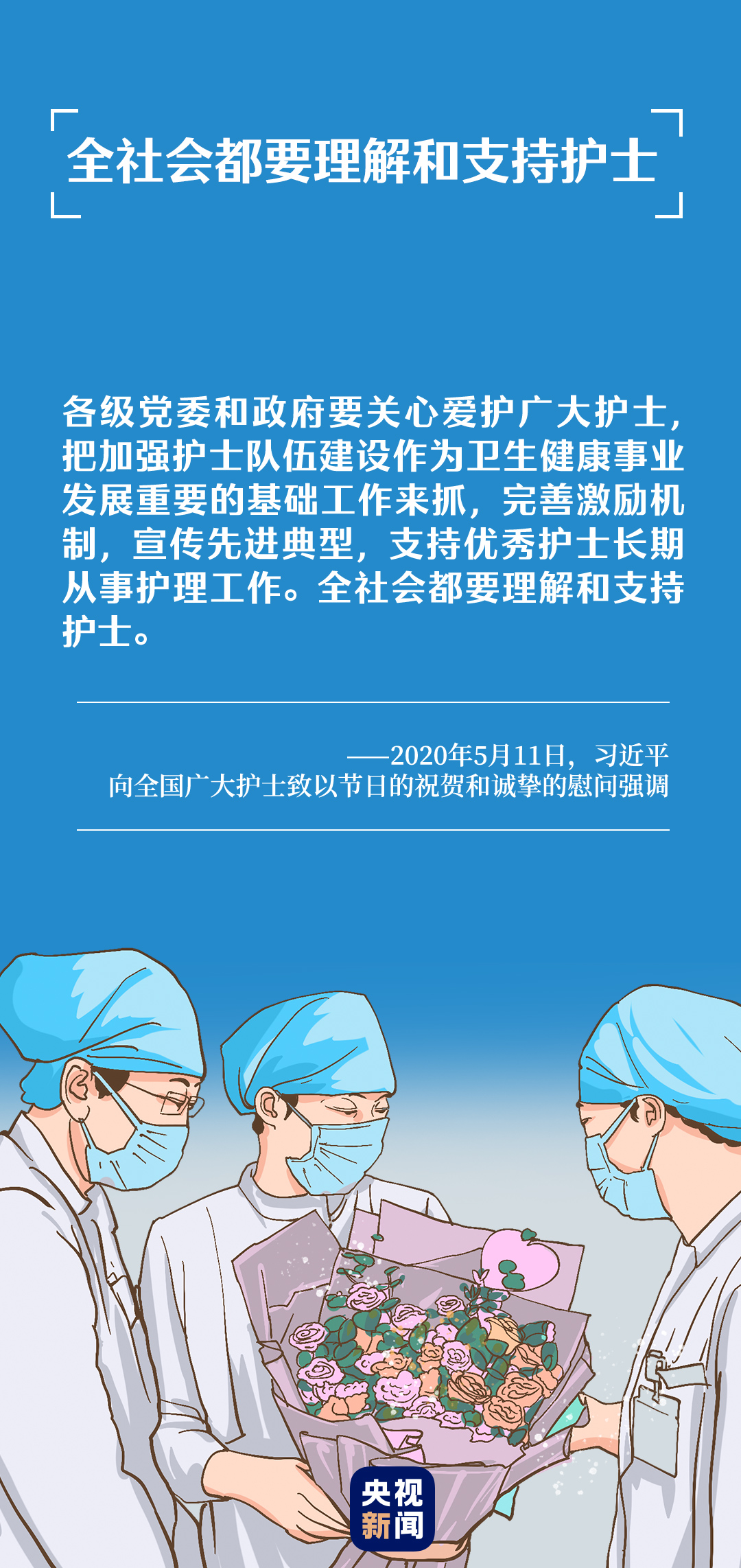 習(xí)近平總書記十分關(guān)心護(hù)士群體,要求各級(jí)黨委和政府關(guān)心愛護(hù)廣大護(hù)士,全社會(huì)都要理解和支持護(hù)士。
