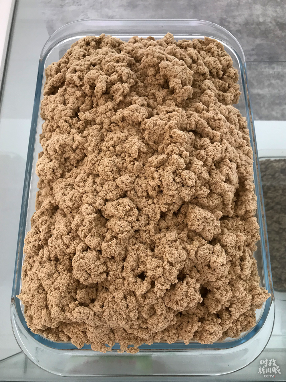 △這是車間里30:1的艾絨,表示30斤艾葉出1斤艾絨,前面的數(shù)字越大,制成的艾條純度越高。(總臺央視記者石偉明拍攝)