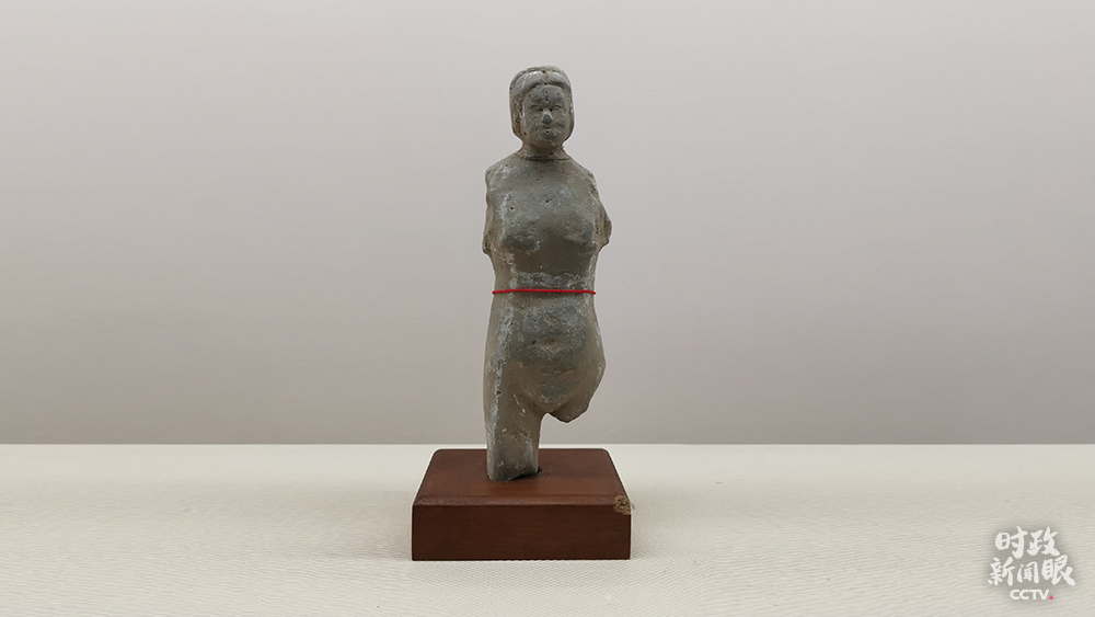 △東漢針灸女陶人。身高24厘米,胸寬7厘米。陶人造型質(zhì)樸,渾身遍布排列成行的針灸穴位,具有極高的學術(shù)價值。(總臺央視記者馬超拍攝)