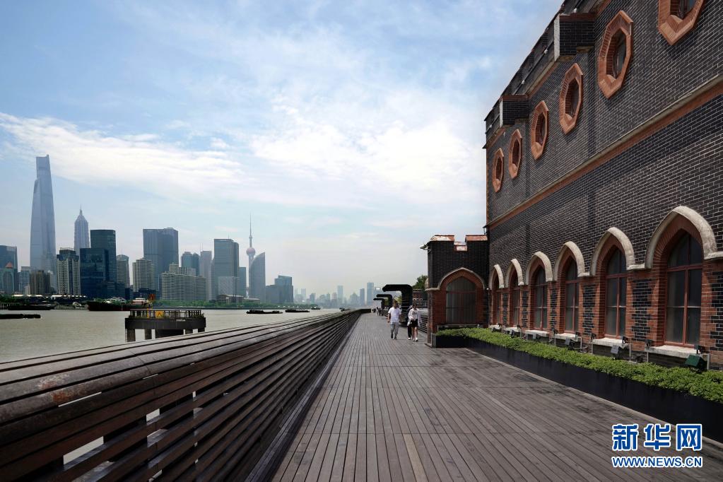 5月15日,市民在楊浦濱江公共空間楊樹浦水廠段的棧橋上漫步。新華社記者 劉穎 攝