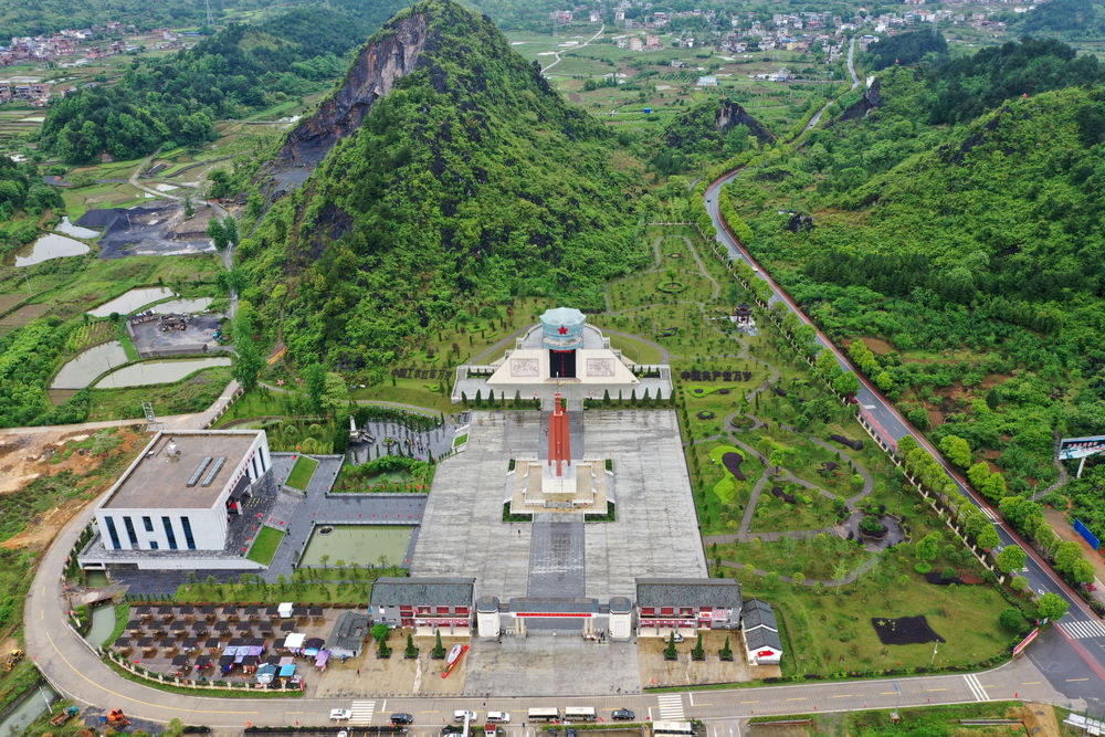 廣西灌陽(yáng)縣湘江戰(zhàn)役新圩阻擊戰(zhàn)酒海井紅軍紀(jì)念園(無(wú)人機(jī)照片,4月27日攝)。新華社記者陸波岸攝