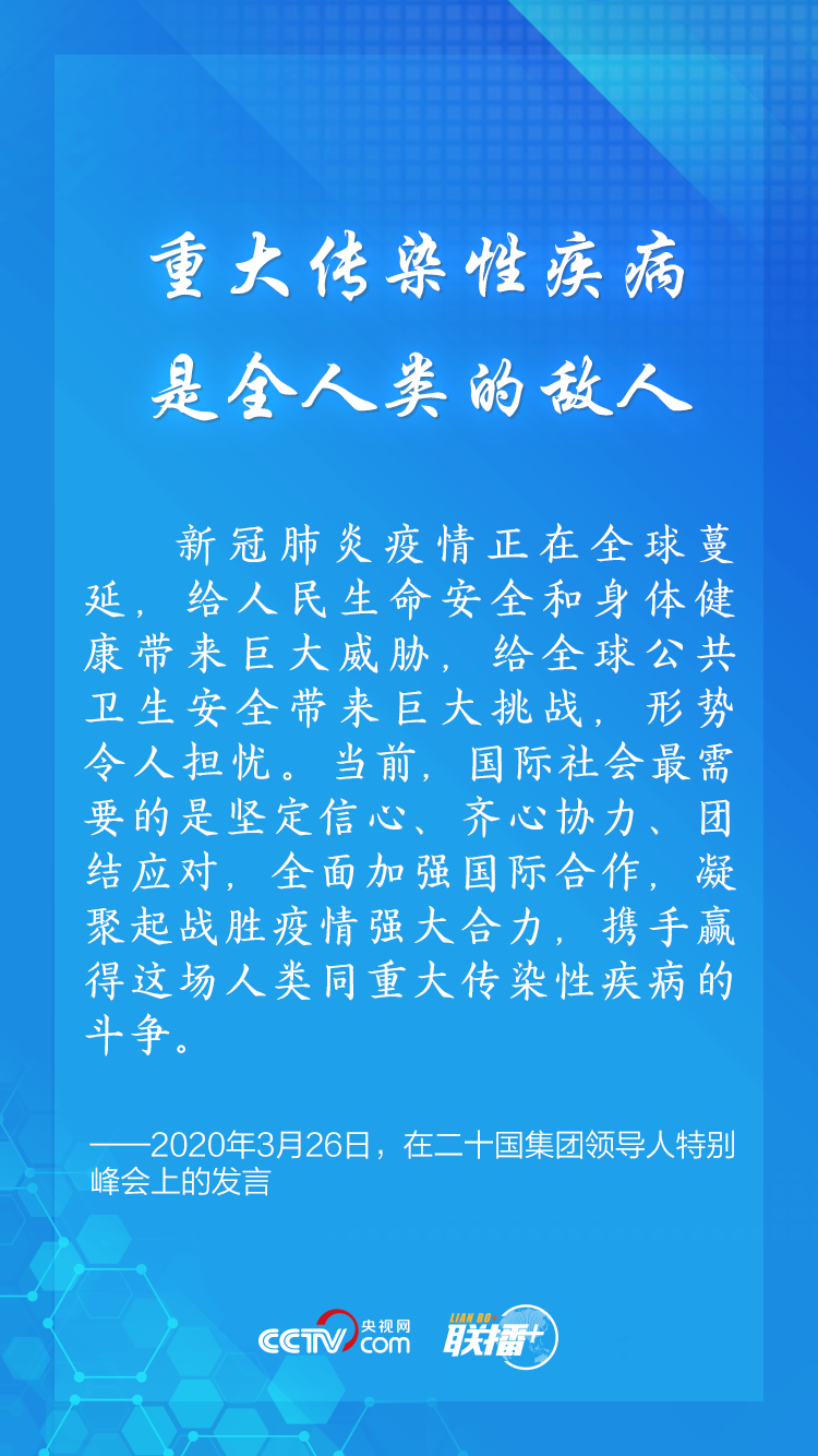 新冠肺炎疫情發(fā)生以來,中國始終積極參與全球抗疫行動,闡明中國理念、提出中國主張。習(xí)主席更是身體力行,多次出席“云會議”,站在守護(hù)全人類生命安全的高度,呼吁國際社會團(tuán)結(jié)合作,堅(jiān)持多邊主義、推動構(gòu)建人類衛(wèi)生健康共同體。