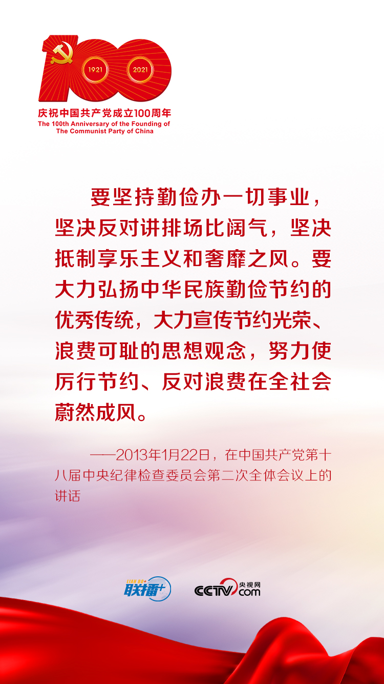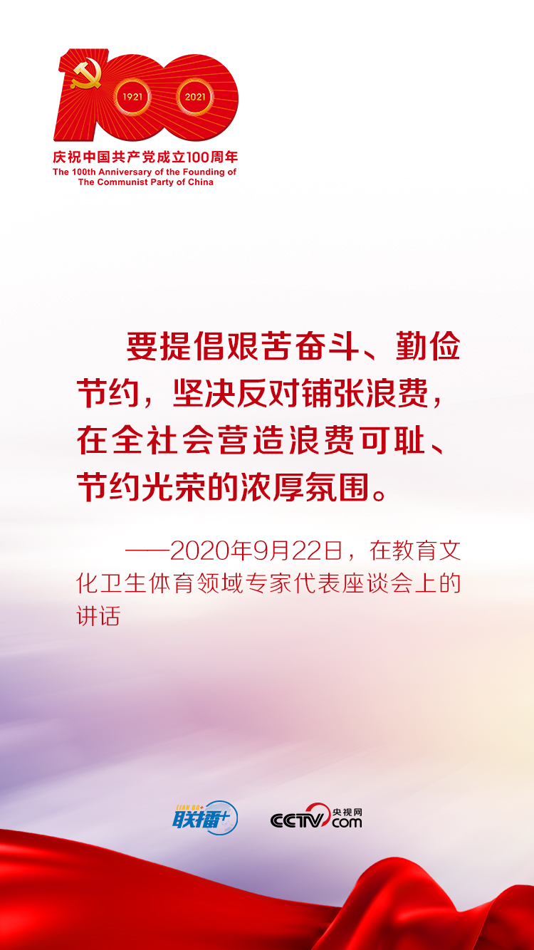 聯(lián)播+“節(jié)儉樸素,力戒奢靡,是我們黨的傳家寶?,F(xiàn)在,我們生活條件好了,但艱苦奮斗的精神一點(diǎn)都不能少,必須堅(jiān)持以儉修身、以儉興業(yè),堅(jiān)持厲行節(jié)約、勤儉辦一切事情。”
