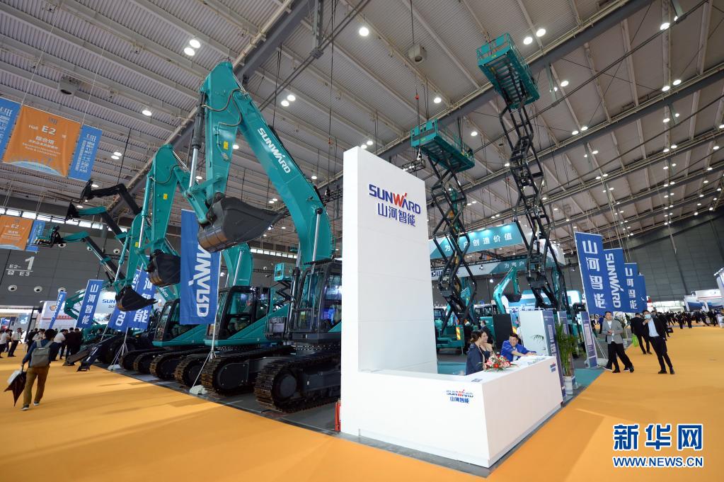 5月19日,觀眾在2021長(zhǎng)沙國(guó)際工程機(jī)械展覽會(huì)山河智能展區(qū)參觀。新華社記者 陳振海 攝