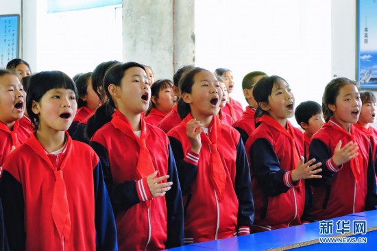 在黑龍江省安達(dá)市任民鎮(zhèn)中心小學(xué),“村里的孩兒”音樂(lè)班的孩子在練習(xí)合唱(5月27日攝)。新華社記者 黃騰 攝