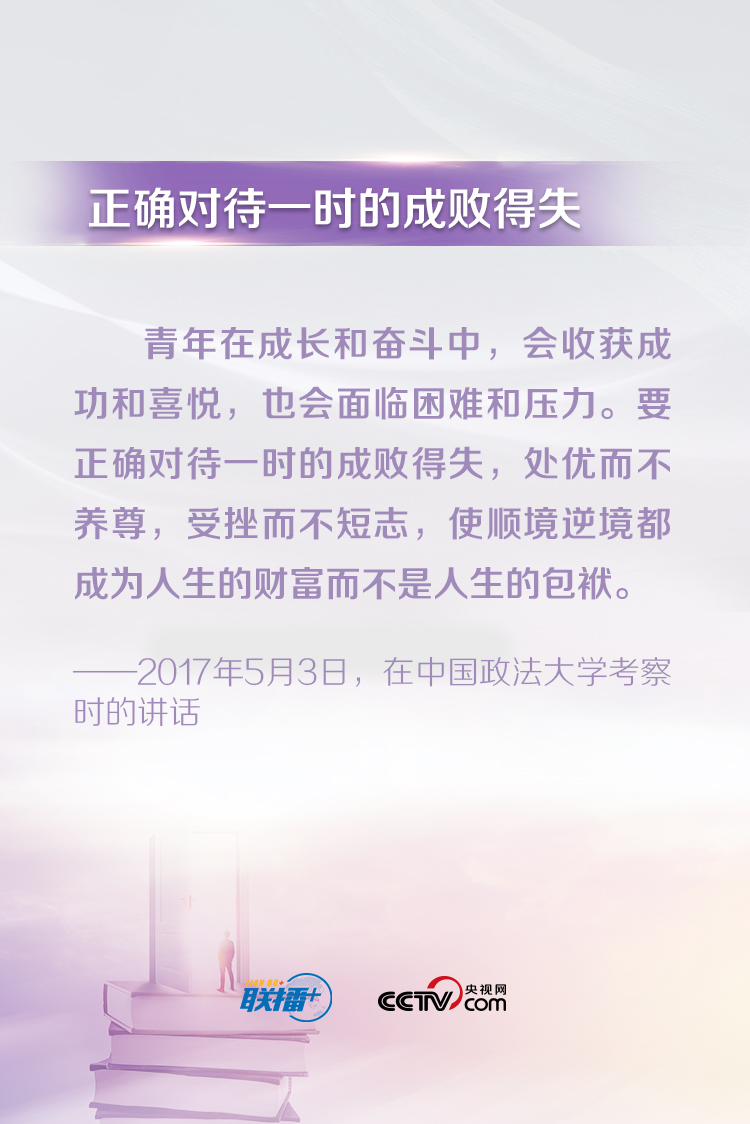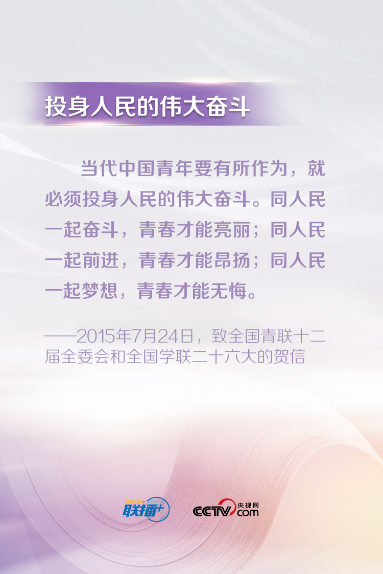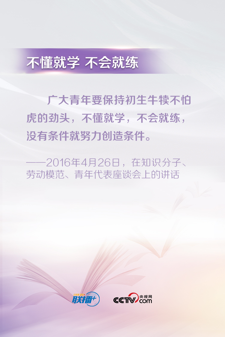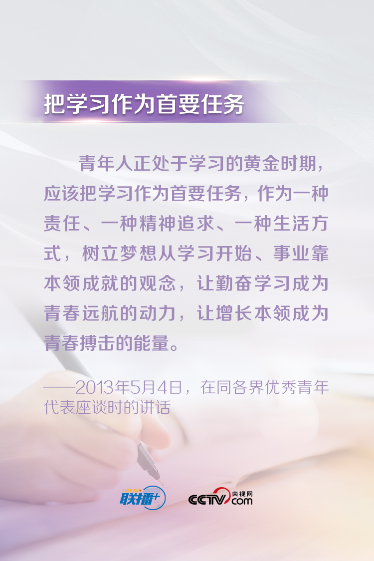 習(xí)近平總書記一直以來(lái)都十分關(guān)心青年成長(zhǎng)成才,常常走近青年、傾聽(tīng)青年、鼓勵(lì)青年。他說(shuō),“青年最富有朝氣、最富有夢(mèng)想”,“中華民族偉大復(fù)興終將在廣大青年的接力奮斗中變?yōu)楝F(xiàn)實(shí)”。央視網(wǎng)《聯(lián)播+》特梳理總書記對(duì)廣大青年的寄語(yǔ),與您一起學(xué)習(xí)。