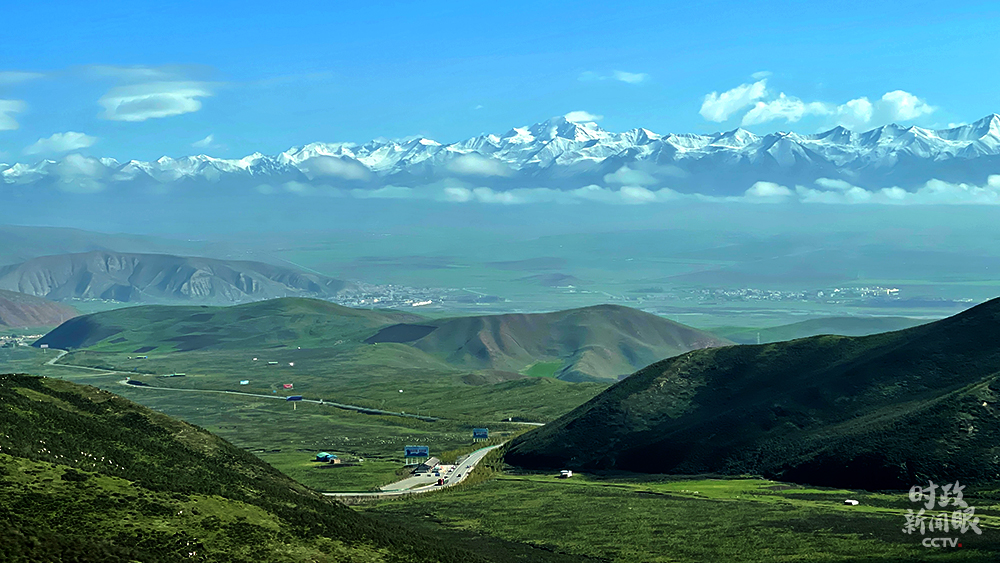 △從海北州門源縣,能遠(yuǎn)眺到祁連山脈。(總臺(tái)央視記者楊新禹拍攝)