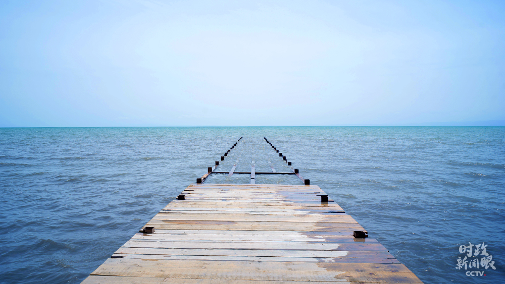 △向湖水延伸的棧橋(總臺(tái)央視記者彭漢明拍攝)