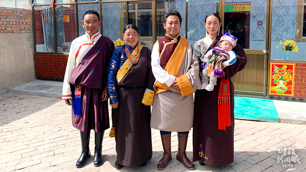 △索南才讓(左一)一家當(dāng)天拍攝的全家福(總臺(tái)央視記者段德文拍攝)