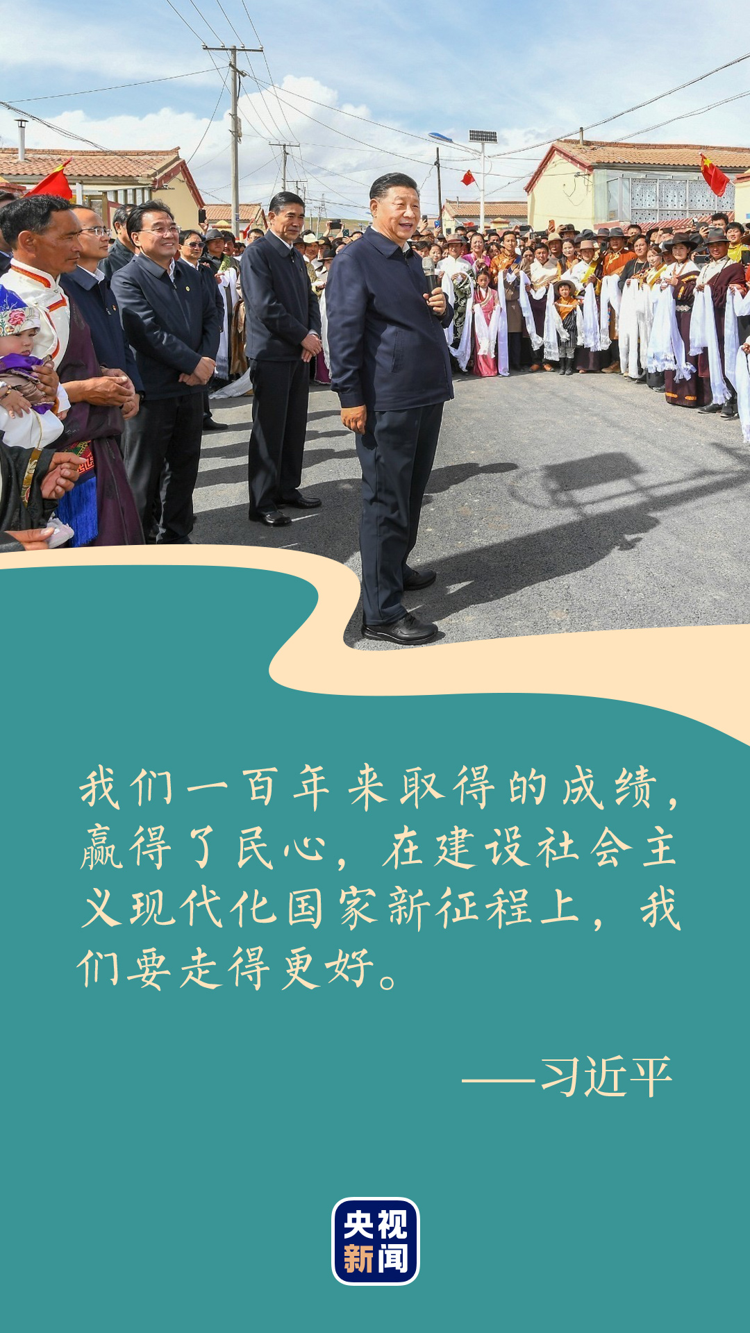 總書記走進牧民索南才讓家中,看望慰問藏族群眾。索南才讓說,牧民生活好,全靠黨的政策好,衷心感謝黨、衷心感謝總書記。習(xí)近平深情地說,我們黨成立一百年了,為什么老百姓衷心擁護中國共產(chǎn)黨?因為我們黨始終全心全意為人民服務(wù)、為各民族謀幸福。