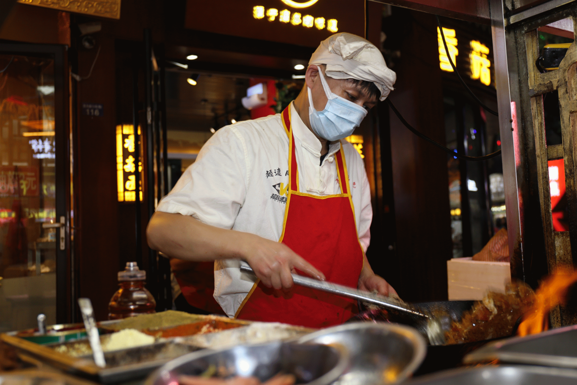二道街,從18:00開始,道路兩旁才多了一些忙碌的身影。準(zhǔn)備食材、搭爐灶、擺桌椅,商販們一天的工作開始了。隨著人流逐漸增多,道路也變得擁擠起來。這種熙熙攘攘的氛圍,讓人心里感到特別踏實。