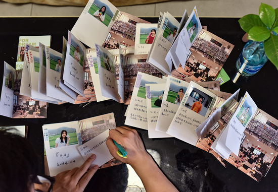 高考后的聯(lián)歡會上,我把這一年拍的照片做成的攝影書,送給了每位學生。學生們也每人寫了一封信,湊成一大本書送給我。最讓我高興的話是:“老師,雖然我現(xiàn)在的成績不好,但是我會在未來繼續(xù)學習,上??坪笠惨獙I荆佳芯可?。”