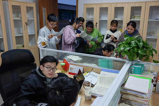 4月7日,晚自習時,學生們擠在辦公室里找老師問問題。