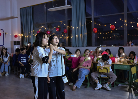班上有15名學生來自同一個應屆班級,這種陪伴在一定程度上緩解了他們的心理壓力。和我的高中生活相比,這里輕松多了:不公開考試排名,不會將高考生排除在學校的文體活動之外,女孩子們可以化妝、留長發(fā),還有人穿著漢服來上課。