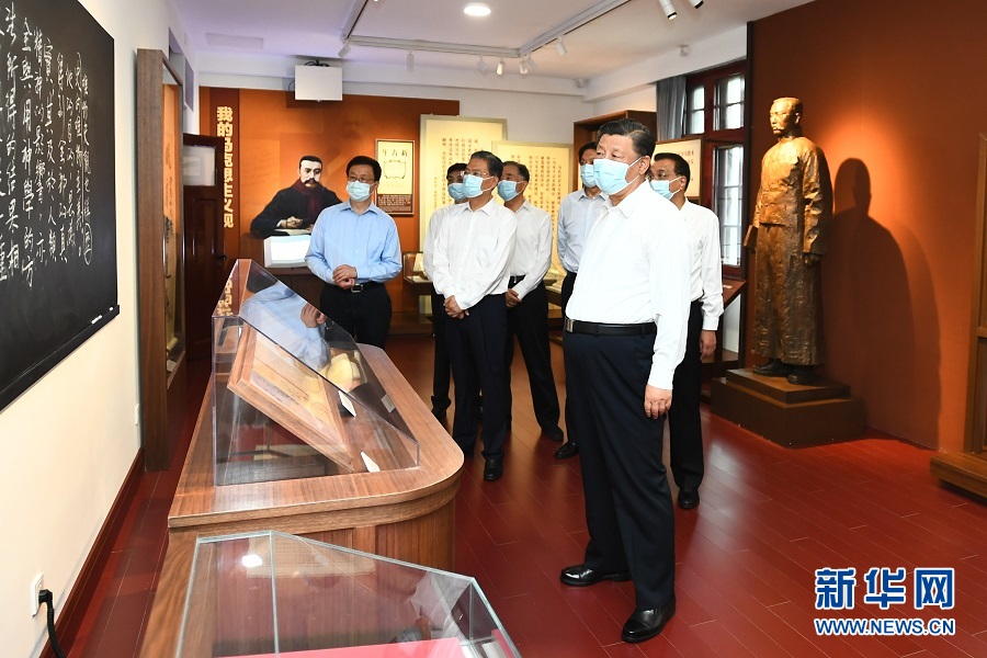 25日下午,習近平帶領中央政治局同志來到北大紅樓,參觀“光輝偉業(yè) 紅色序章——北大紅樓與中國共產黨早期北京革命活動主題展”,重溫李大釗、陳獨秀等開展革命活動、推動馬克思主義在中國早期傳播、醞釀和籌建中國共產黨等革命歷史。展廳內,一張張圖片、一件件文物,全面展現(xiàn)了那個時期的光輝歷史。習近平不時停下腳步,詢問相關細節(jié)。他指出,北大是新文化運動的中心和五四運動的策源地,最早在我國傳播馬克思主義思想,也是我們黨在北京早期革命活動的歷史見證地,在建黨過程中具有重要地位。要加強紅色資源保護和利用,尊重歷史事實,準確評價歷史,正確學史用史。