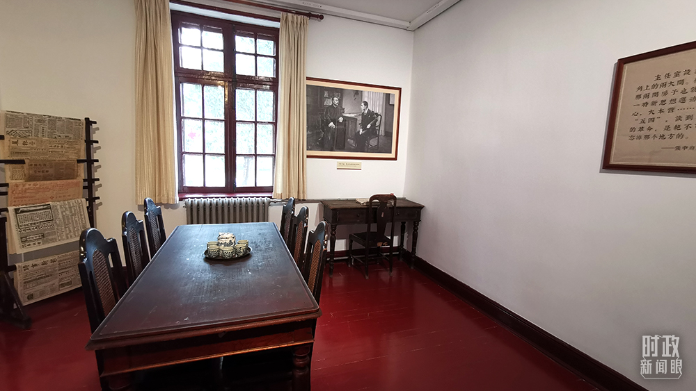 △李大釗常在辦公室與進(jìn)步青年共同討論、研究各種新思潮。1920年還在此會(huì)見(jiàn)共產(chǎn)國(guó)際代表維經(jīng)斯基,研究醞釀成立共產(chǎn)黨。(總臺(tái)央視記者李曉周拍攝)