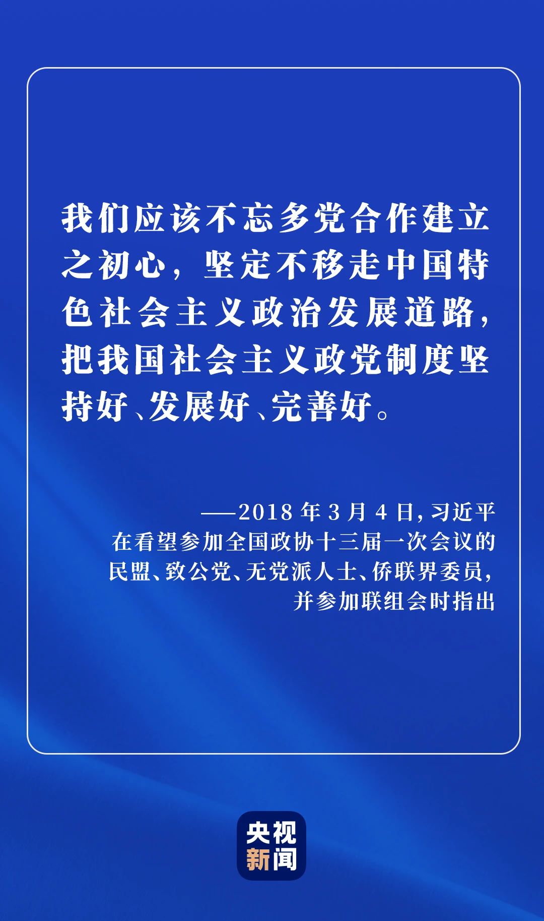 2018年3月4日,習(xí)近平總書記在看望參加全國(guó)政協(xié)十三屆一次會(huì)議的民盟、致公黨、無(wú)黨派人士、僑聯(lián)界委員,并參加聯(lián)組會(huì)時(shí)表示,希望各民主黨派和無(wú)黨派人士要做中國(guó)共產(chǎn)黨的好參謀、好幫手、好同事,增強(qiáng)責(zé)任和擔(dān)當(dāng),共同把中國(guó)的事情辦好。