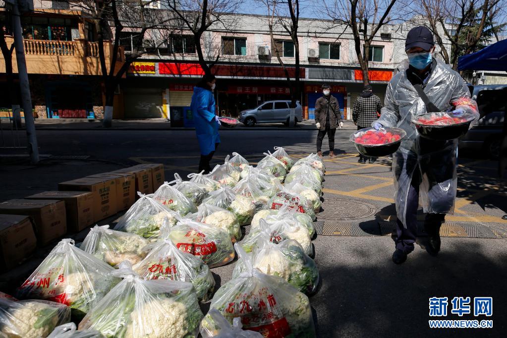 下沉至武漢市花橋社區(qū)的干部在搬運居民訂購的草莓(2020年2月20日攝)。新華社記者 沈伯韓 攝
