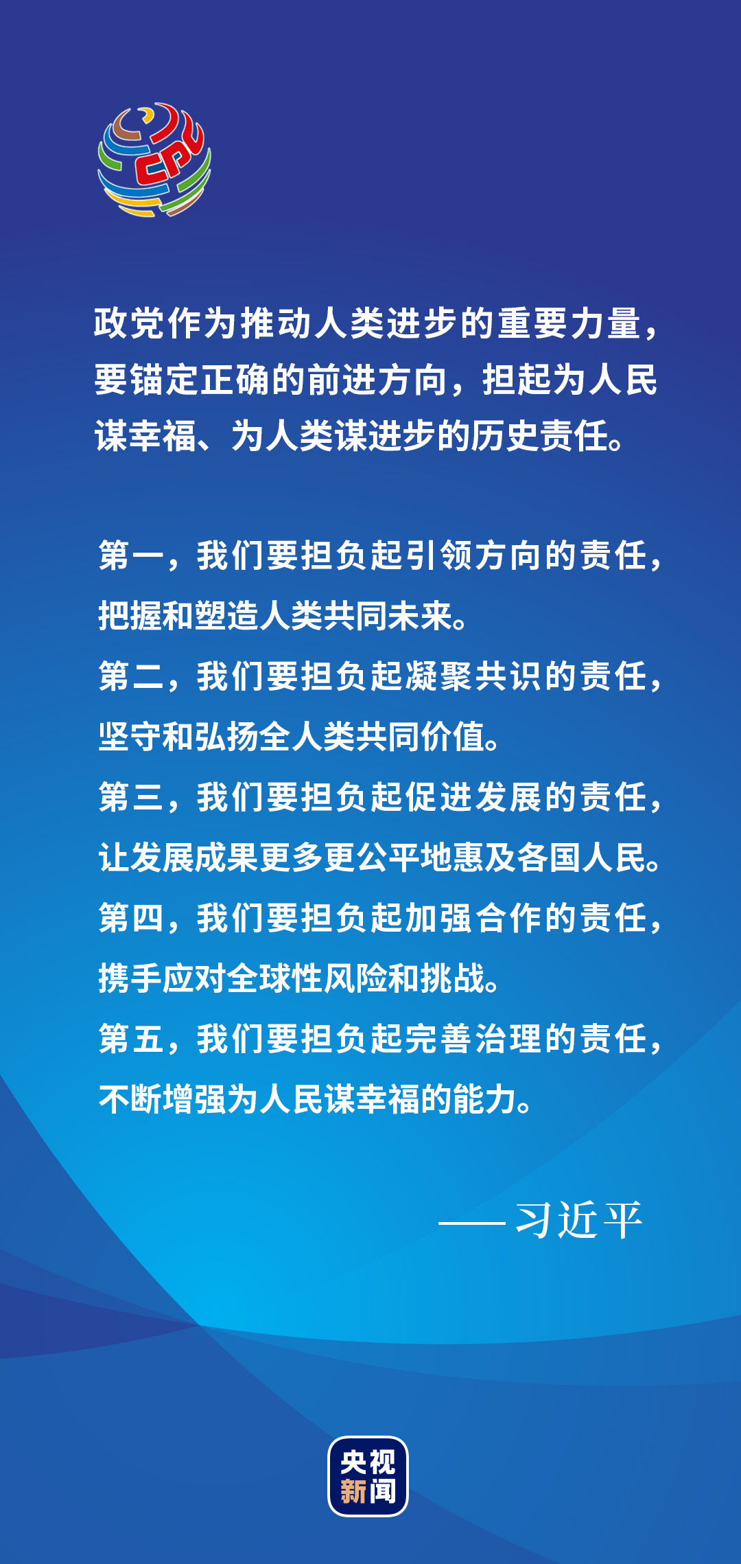 今天,全球疫情形勢(shì)依然嚴(yán)峻,經(jīng)濟(jì)復(fù)蘇前景不明。中國共產(chǎn)黨與各國政黨和政治組織分享治黨治國經(jīng)驗(yàn),始終同大家一道,站在歷史正確的一邊,站在人類進(jìn)步的一邊,為推動(dòng)構(gòu)建人類命運(yùn)共同體、建設(shè)更加美好的世界作出新的更大貢獻(xiàn)!