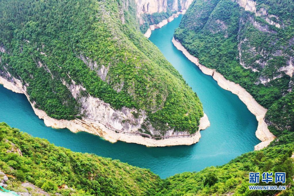 重慶市巫山縣魚頭灣景象(2020年5月26日攝,無人機照片)。長江經(jīng)濟(jì)帶沿江11省市大力推進(jìn)生態(tài)環(huán)境整治,“共抓大保護(hù)、不搞大開發(fā)”,共同舞動高質(zhì)量發(fā)展的“綠色長龍”。新華社記者 王全超 攝