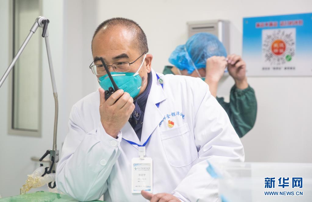 張定宇在武漢金銀潭醫(yī)院綜合病區(qū)樓聯(lián)系、協(xié)調工作(2020年1月27日攝)。新華社發(fā)(柯皓 攝)