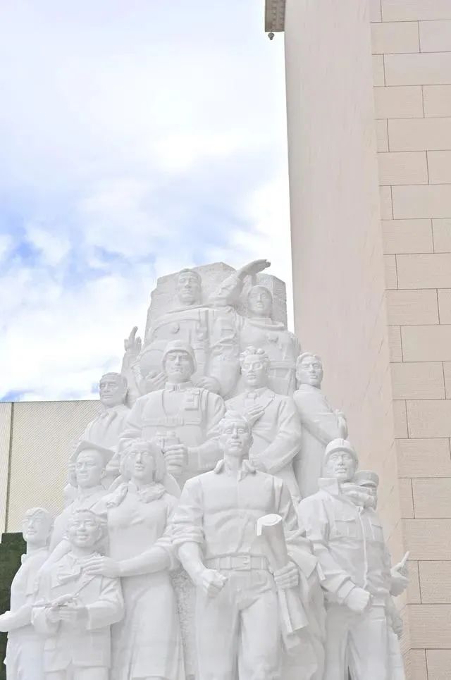 在中國(guó)共產(chǎn)黨歷史展覽館廣場(chǎng)上,《信仰》《偉業(yè)》《攻堅(jiān)》《追夢(mèng)》四組大型雕塑巍然矗立,氣勢(shì)恢宏,分別對(duì)應(yīng)“四個(gè)偉大”主題,276個(gè)人物與583塊漢白玉融為一體。