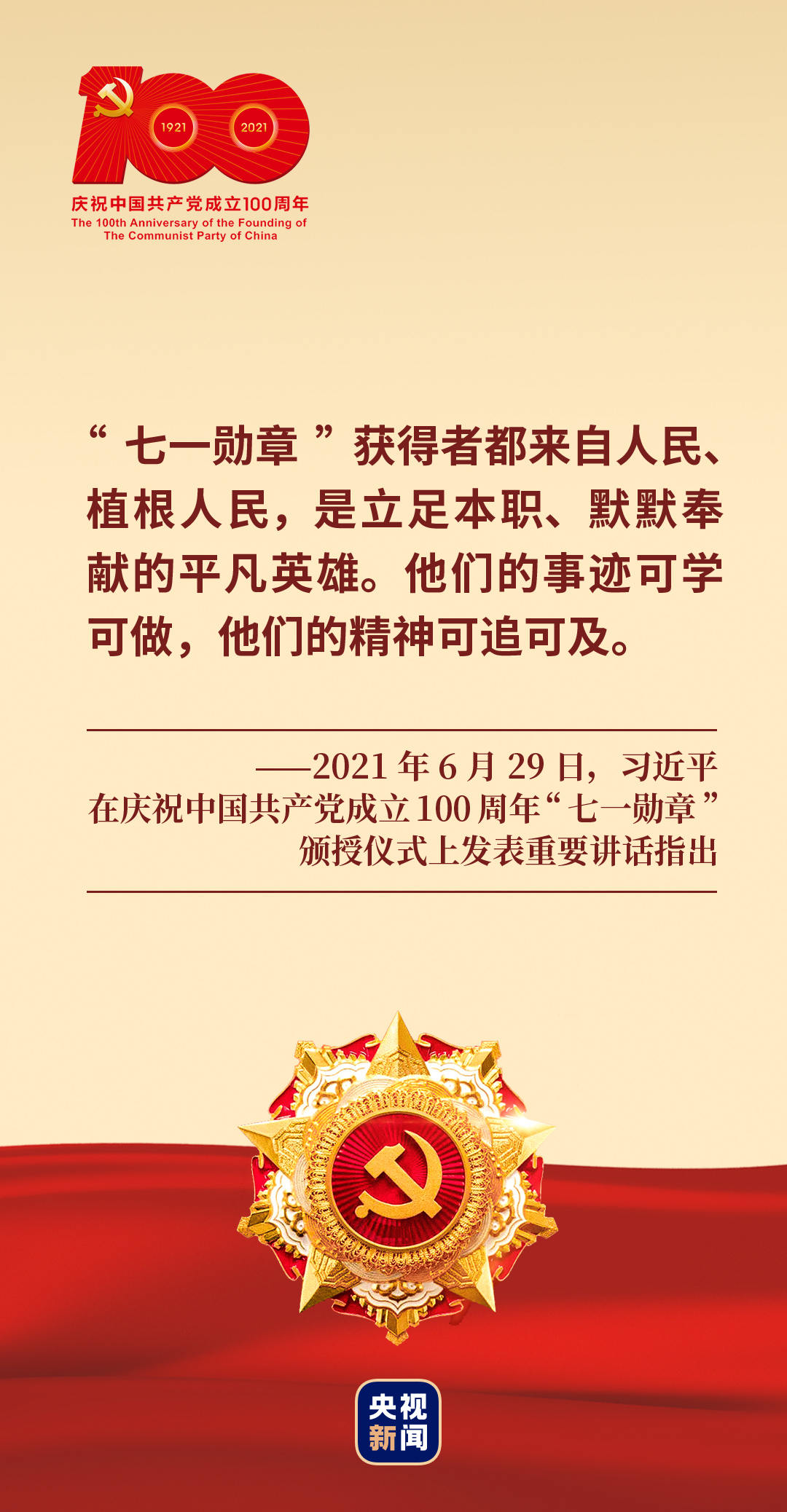 習(xí)近平總書記向“七一勛章”獲得者頒授勛章,稱贊他們是各條戰(zhàn)線黨員中的杰出代表,“他們的事跡可學(xué)可做,他們的精神可追可及。”