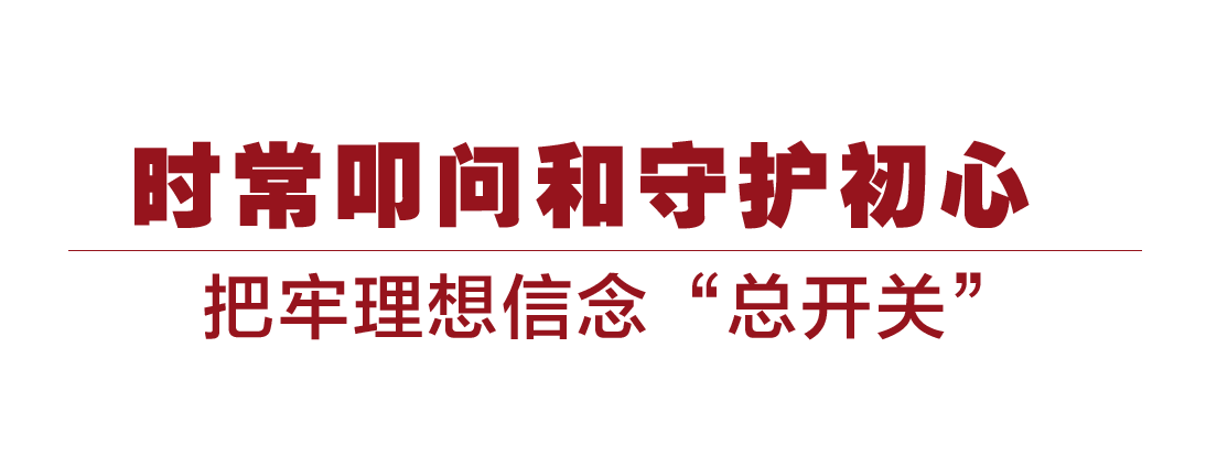 “要始終把不忘初心、牢記使命作為必修課、常修課,時常叩問和守護初心,及時修枝剪葉、補鈣壯骨,把牢理想信念‘總開關’,在大是大非面前旗幟鮮明,在風浪考驗面前無所畏懼,在各種誘惑面前立場堅定,在關鍵時刻讓黨信得過、靠得住、能放心。”2019年12月,習近平在主持中央政治局“不忘初心、牢記使命”專題民主生活會時指出。