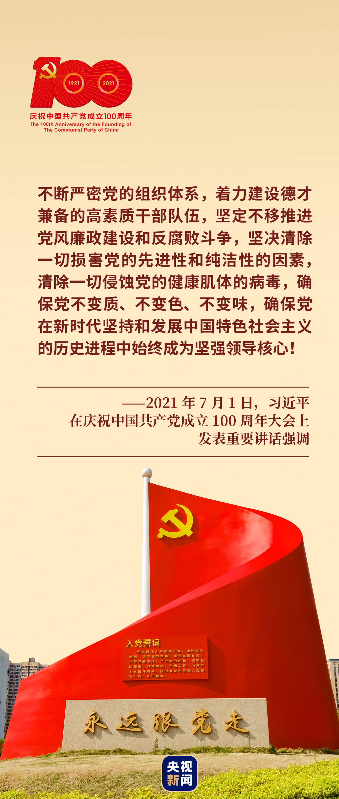 新征程上,筑牢信仰之基、補足精神之鈣、把穩(wěn)思想之舵,風華正茂的百年大黨不斷從勝利走向新的勝利。