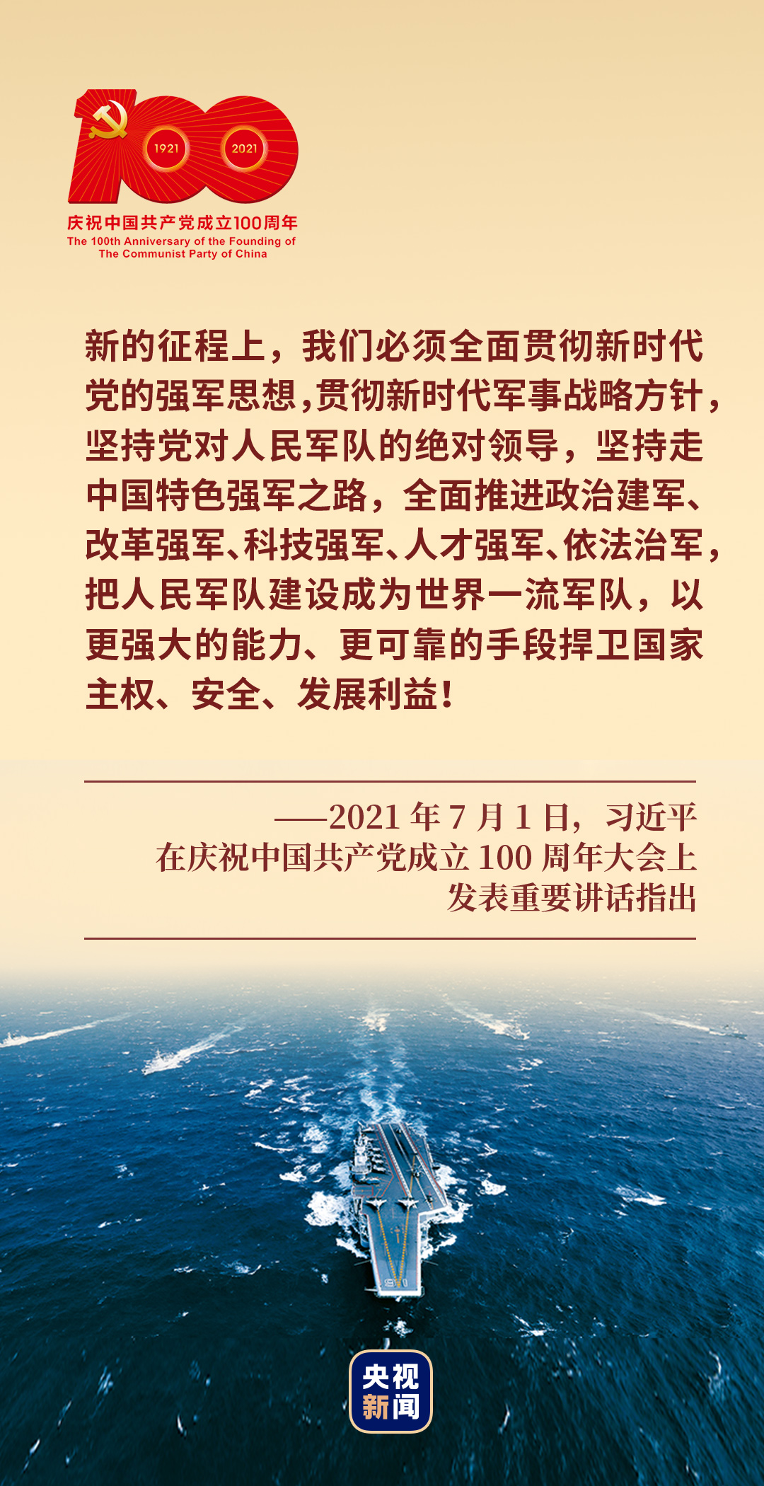 “把人民軍隊(duì)建設(shè)成為世界一流軍隊(duì),以更強(qiáng)大的能力、更可靠的手段捍衛(wèi)國(guó)家主權(quán)、安全、發(fā)展利益!”2021年7月1日,習(xí)近平總書(shū)記在慶祝中國(guó)共產(chǎn)黨成立100周年大會(huì)上的鏗鏘話語(yǔ),指引現(xiàn)實(shí),啟迪未來(lái)。