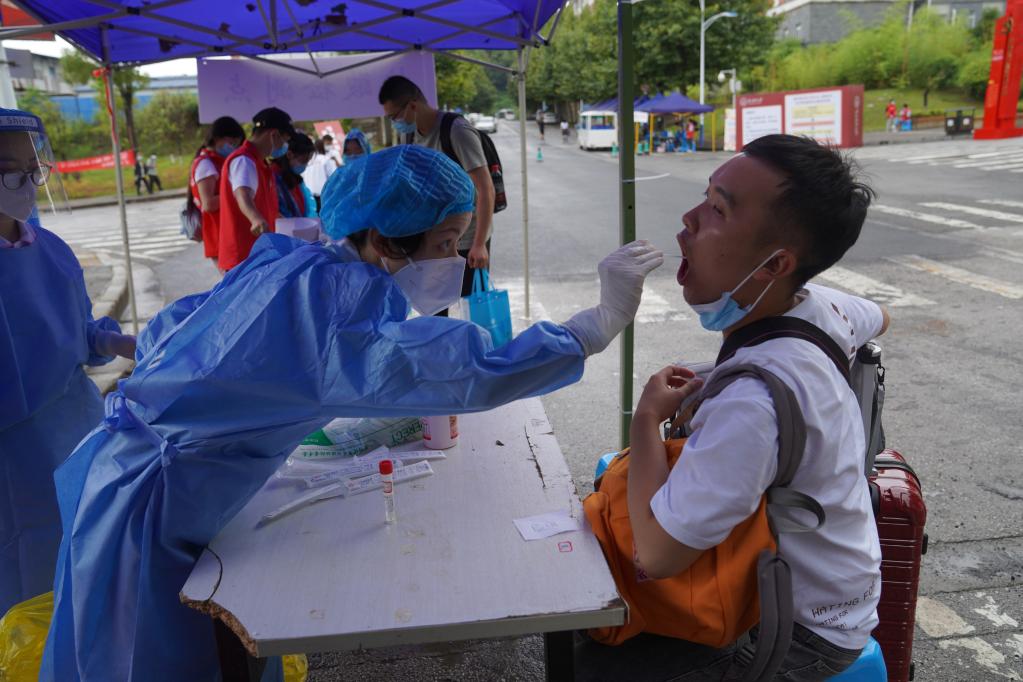 8月24日,貴州醫(yī)科大學(xué)新生報(bào)到注冊(cè)時(shí)接受核酸檢測。新華社發(fā)(李菡逸 攝)