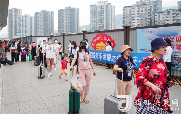 西部決策網(wǎng)訊 9月14日,由成都始發(fā)的Y582次“熊貓專列”,搭載著230余名游客,順利抵達(dá)武隆火車站,開啟兩天一晚的世界自然遺產(chǎn)之旅。這也是新一輪疫情后,首列從四川成都發(fā)往重慶武隆的跨省游專列,標(biāo)志著武隆旅游業(yè)復(fù)蘇,并由此進(jìn)入“快車道”。