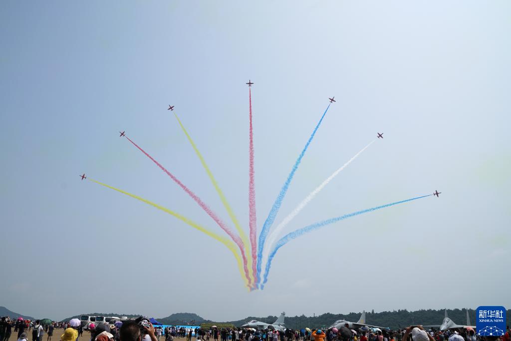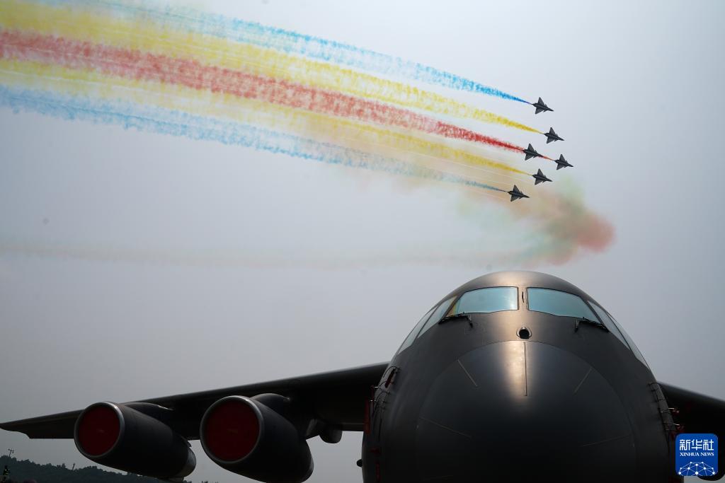 10月1日,中國空軍八一飛行表演隊在第十三屆中國國際航空航天博覽會上進行飛行表演。新華社發(fā)(余紅春 攝)