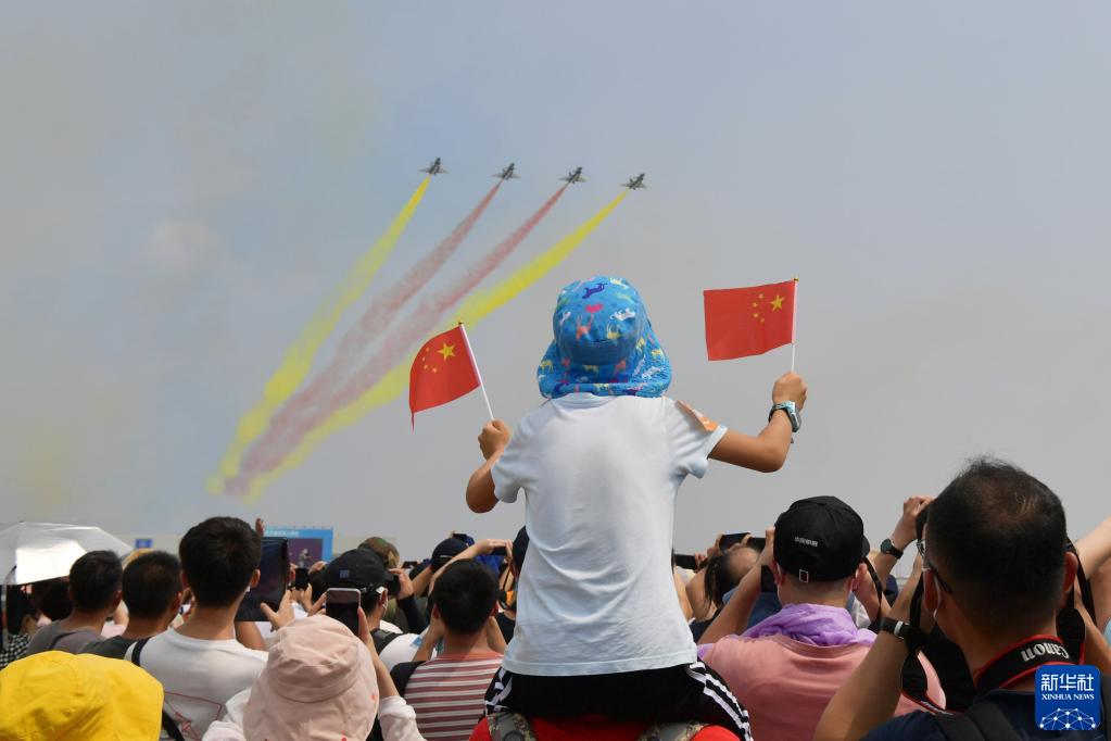 中國航展現(xiàn)場,五星紅旗隨處可見,成為全場最鮮艷的顏色。藍天之上,戰(zhàn)鷹向祖國報告:空軍官兵堅決捍衛(wèi)國家主權,堅決捍衛(wèi)祖國統(tǒng)一,堅定維護世界和平?! ⌒氯A社記者劉濟美、高玉嬌、劉一諾
