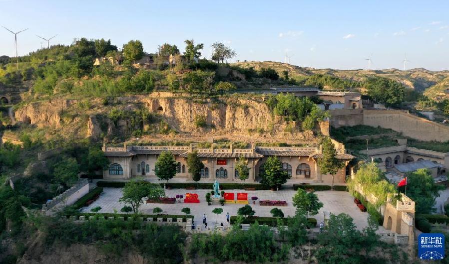 游人在陜西省榆林市米脂縣楊家溝革命舊址參觀(guān)(9月10日攝,無(wú)人機(jī)照片)。新華社記者 陶明 攝