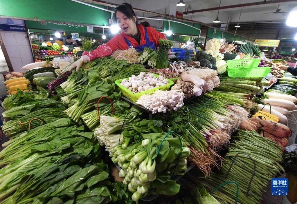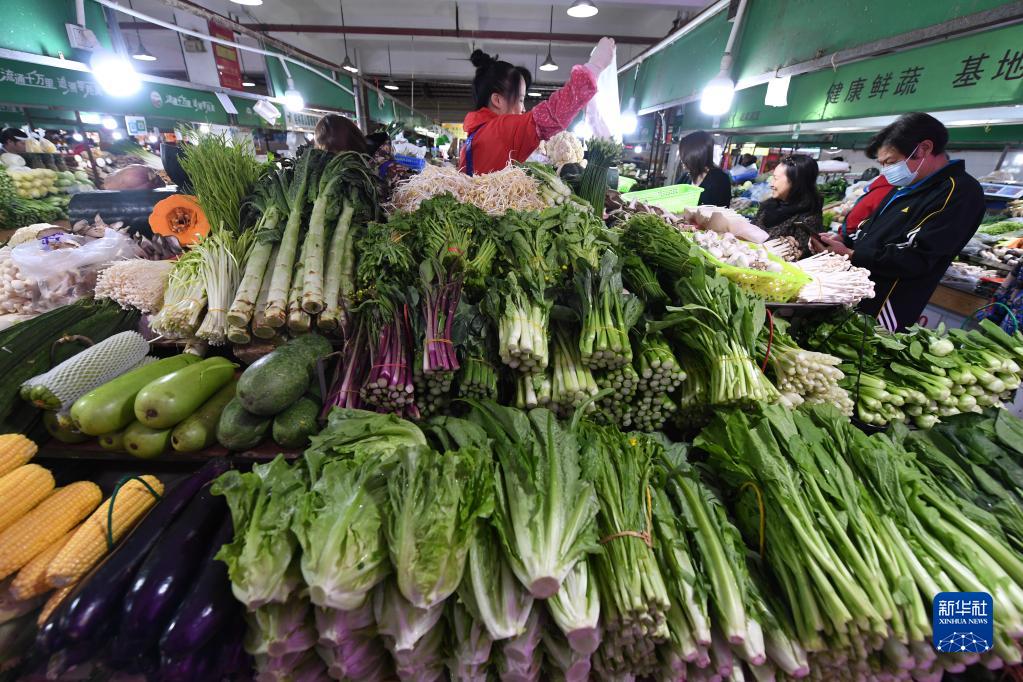 11月10日,在廣西南寧市濱湖路一家農貿市場,人們在選購蔬菜。新華社記者 陸波岸 攝
