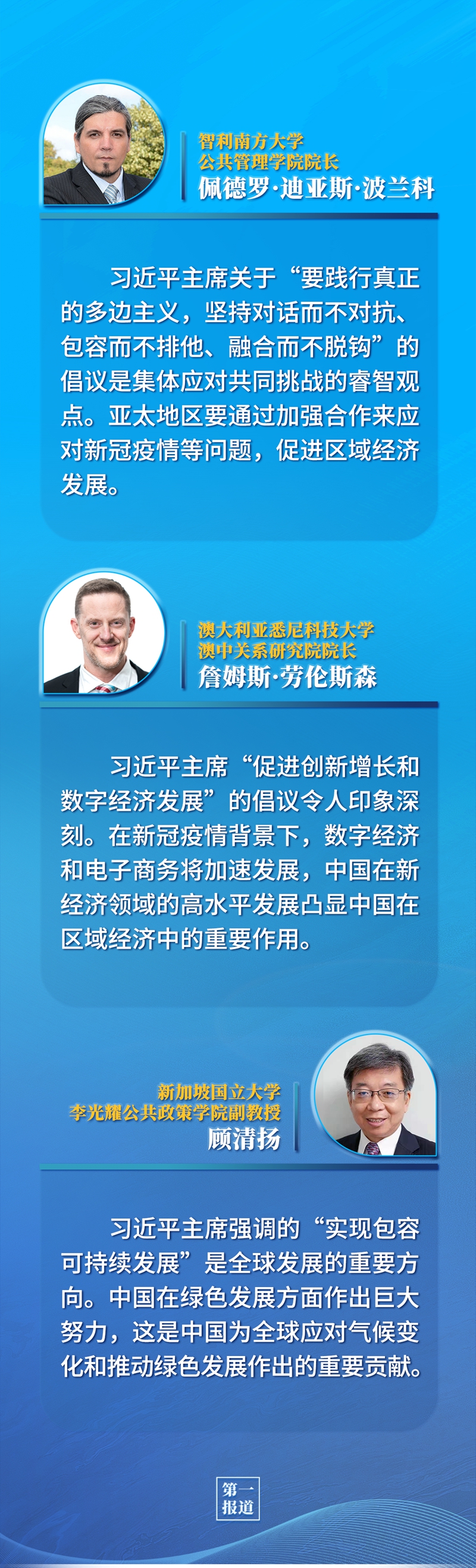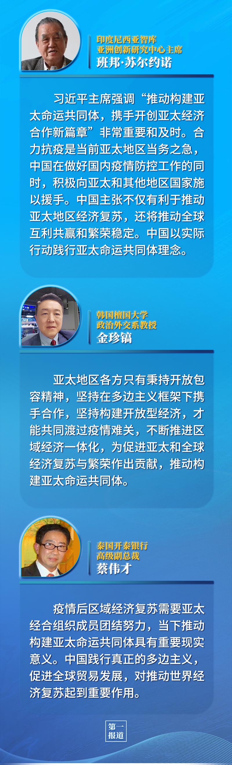 國(guó)家主席習(xí)近平12日在北京以視頻方式出席亞太經(jīng)合組織第二十八次領(lǐng)導(dǎo)人非正式會(huì)議并發(fā)表重要講話。多國(guó)人士認(rèn)為,習(xí)近平主席提出深化區(qū)域合作的一系列政策主張,凝聚亞太團(tuán)結(jié)合作、共克時(shí)艱共識(shí),為推動(dòng)構(gòu)建亞太命運(yùn)共同體、促進(jìn)世界經(jīng)濟(jì)復(fù)蘇發(fā)展賦予動(dòng)能。