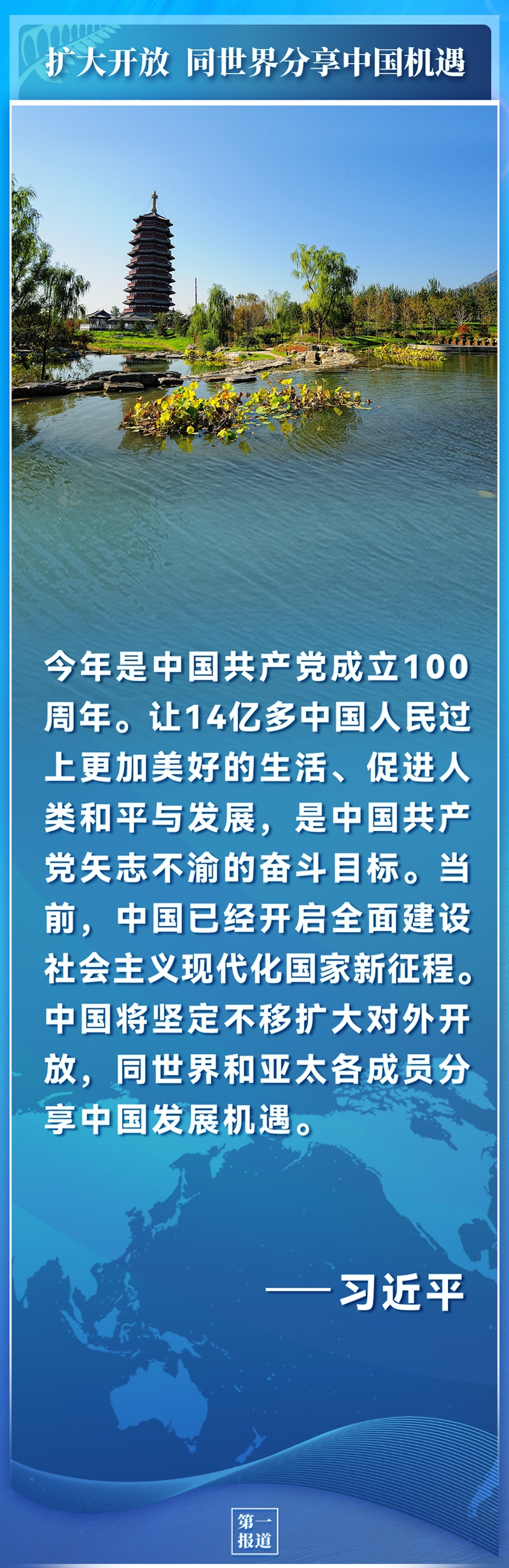 今年是中國(guó)共產(chǎn)黨成立100周年。讓14億多中國(guó)人民過(guò)上更加美好的生活、促進(jìn)人類(lèi)和平與發(fā)展,是中國(guó)共產(chǎn)黨矢志不渝的奮斗目標(biāo)。當(dāng)前,中國(guó)已經(jīng)開(kāi)啟全面建設(shè)社會(huì)主義現(xiàn)代化國(guó)家新征程。中國(guó)將堅(jiān)定不移擴(kuò)大對(duì)外開(kāi)放,同世界和亞太各成員分享中國(guó)發(fā)展機(jī)遇。