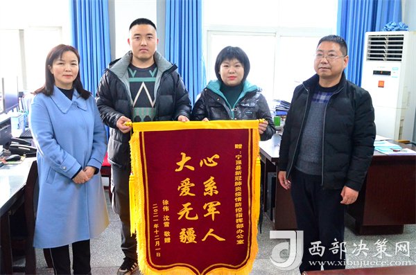 西部決策網(wǎng)訊“我能夠與家人團圓,能夠照顧我的妻子和母親,能夠見到剛出生不久的孩子,給你們添了不少麻煩,真的太感謝你們了!”12月1日下午,在四川綿陽某部隊服役回家探親、家住寧強縣漢源街道辦二道河社區(qū)的徐偉與他的妻子及姐姐一同來到縣疫情防控辦,將一面印有“心系軍人 大愛無疆”的錦旗送到工作人員的手中時激動地說,“你們在百忙中能為我們著想,你們是全心全意為人民服務的好干部……我們制作了一面錦旗略表一下謝意,請收下!”