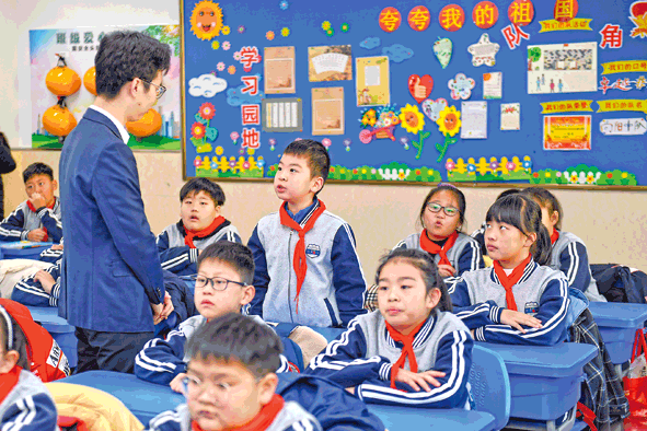 12月3日,在湖州市月河小學(xué)教育集團(tuán)湖東校區(qū),湖東街道邀請(qǐng)律師志愿者講解憲法知識(shí),與學(xué)生互動(dòng)。在國(guó)家憲法日來(lái)臨之際,浙江省湖州市吳興區(qū)組織開(kāi)展憲法主題教育宣傳活動(dòng),走進(jìn)社區(qū)、學(xué)校宣講憲法知識(shí)。新華社記者黃宗治攝