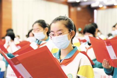 梧桐中學(xué)學(xué)生一起讀憲法學(xué)憲法。