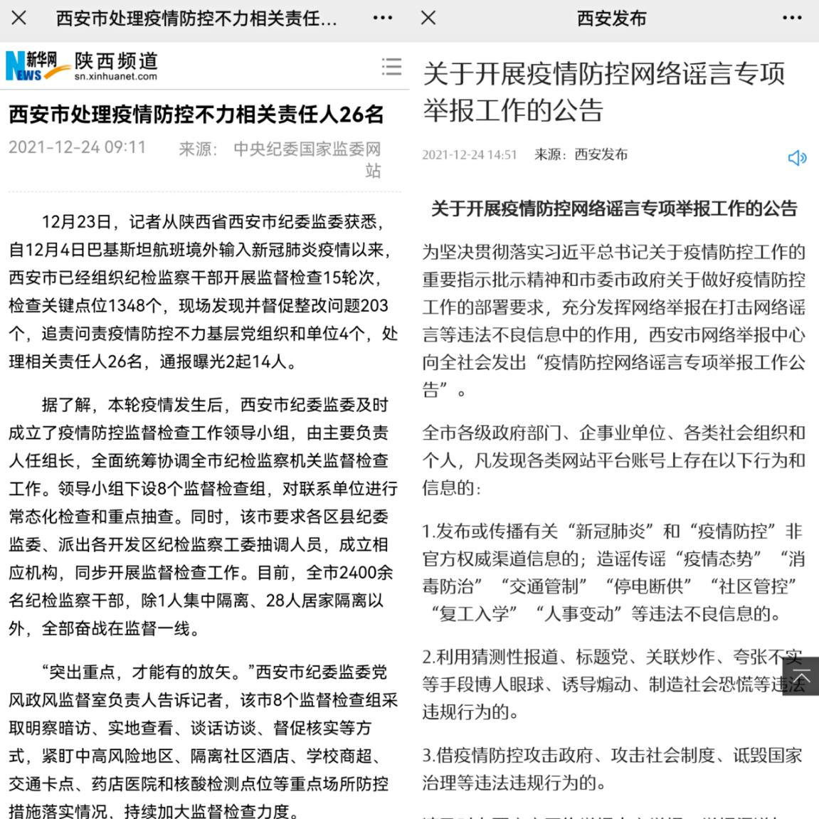 對(duì)在疫情防控工作中不擔(dān)當(dāng)、不作為,推諉扯皮、消極應(yīng)付等形式主義官僚主義問(wèn)題,西安市嚴(yán)肅查處、精準(zhǔn)問(wèn)責(zé)、及時(shí)曝光,進(jìn)一步嚴(yán)明疫情防控紀(jì)律,壓緊壓實(shí)各方責(zé)任。目前,西安市已經(jīng)組織紀(jì)檢監(jiān)察干部開展監(jiān)督檢查15輪次,檢查關(guān)鍵點(diǎn)位1348個(gè),現(xiàn)場(chǎng)發(fā)現(xiàn)并督促整改問(wèn)題203個(gè),追責(zé)問(wèn)責(zé)疫情防控不力基層黨組織和單位4個(gè),處理相關(guān)責(zé)任人26名,通報(bào)曝光2起14人。