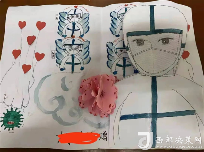 12月13日23時(shí),第一例患者收住隔離病區(qū)。患兒入院時(shí)全身感染,癥狀重,精神狀況差,哭鬧拒絕吃藥。為了安撫孩子焦慮情緒,隔離病區(qū)醫(yī)護(hù)人員輪流進(jìn)入病房,陪患兒玩耍,科室安排專(zhuān)人,購(gòu)買(mǎi)孩子需要的跳繩、皮筋、折紙、水果等生活用品,功夫不負(fù)有心人,經(jīng)過(guò)醫(yī)護(hù)人員耐心、細(xì)心地陪伴,孩子的情緒逐漸平靜下來(lái),并積極配合治療,患兒最終診斷為“急性化膿性扁桃體炎、流行性感冒、急性支氣管炎”。三天后,體溫恢復(fù)正常,精神狀況明顯好轉(zhuǎn)。12月22日,患兒痊愈出院,為了表達(dá)感激之情,她動(dòng)手為隔離病區(qū)工作人員送上自己精心做的一幅手工畫(huà),向科室醫(yī)護(hù)人員敬獻(xiàn)一面錦旗。