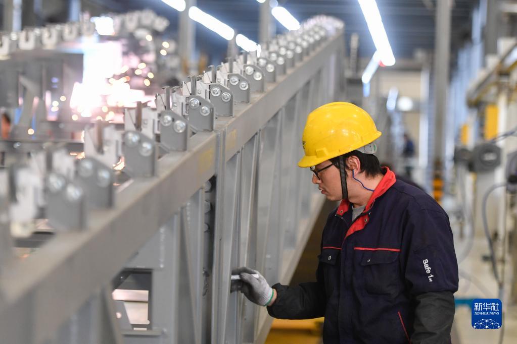 工人在位于杭州市臨平區(qū)的西奧電梯數(shù)字工廠生產(chǎn)車間內(nèi)作業(yè)(12月17日攝)。浙江省各地企業(yè)克服疫情影響,在做好疫情防控的前提下抓生產(chǎn)、保訂單,有序開展各項(xiàng)工作。新華社記者 黃宗治 攝