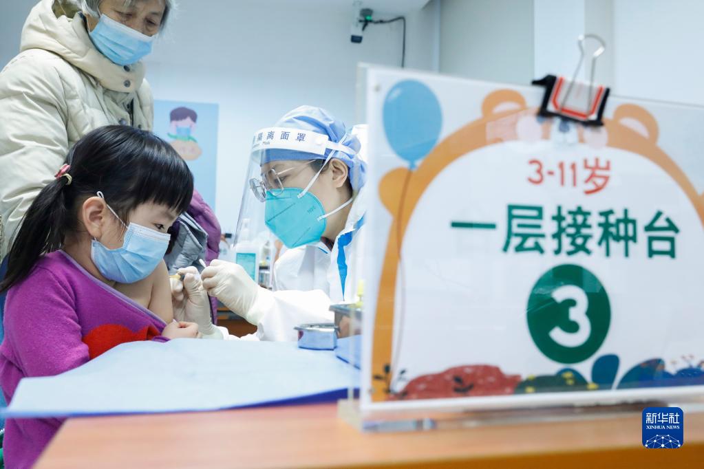 家長(zhǎng)帶著孩子在北京新街口街道新冠疫苗接種點(diǎn)接種疫苗(12月9日攝)。新華社記者 張玉薇 攝